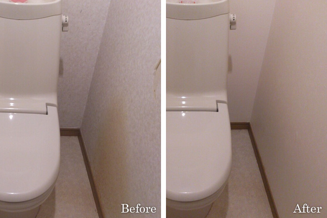 初めはコストを抑えたいとの事でしたがお話を伺うと汚れが気になり張り替えをしたい、これを機会にトイレをきれいに保ちたいですとの事でしたのでお手入れがしやすい機能性壁紙をご提案しました。